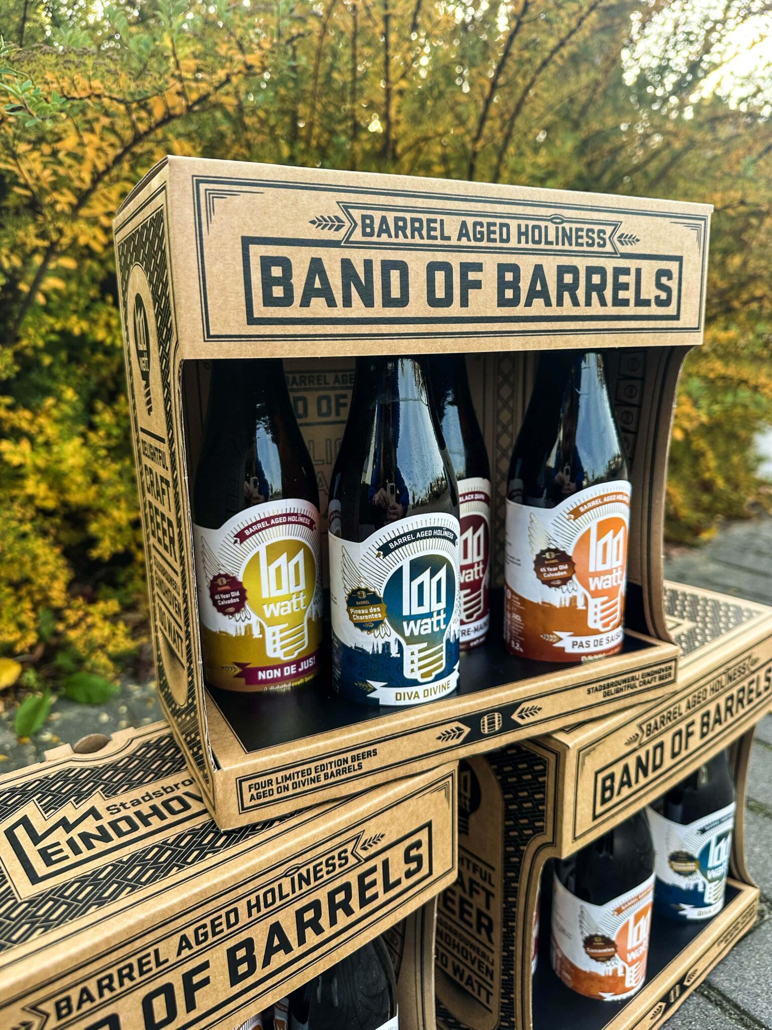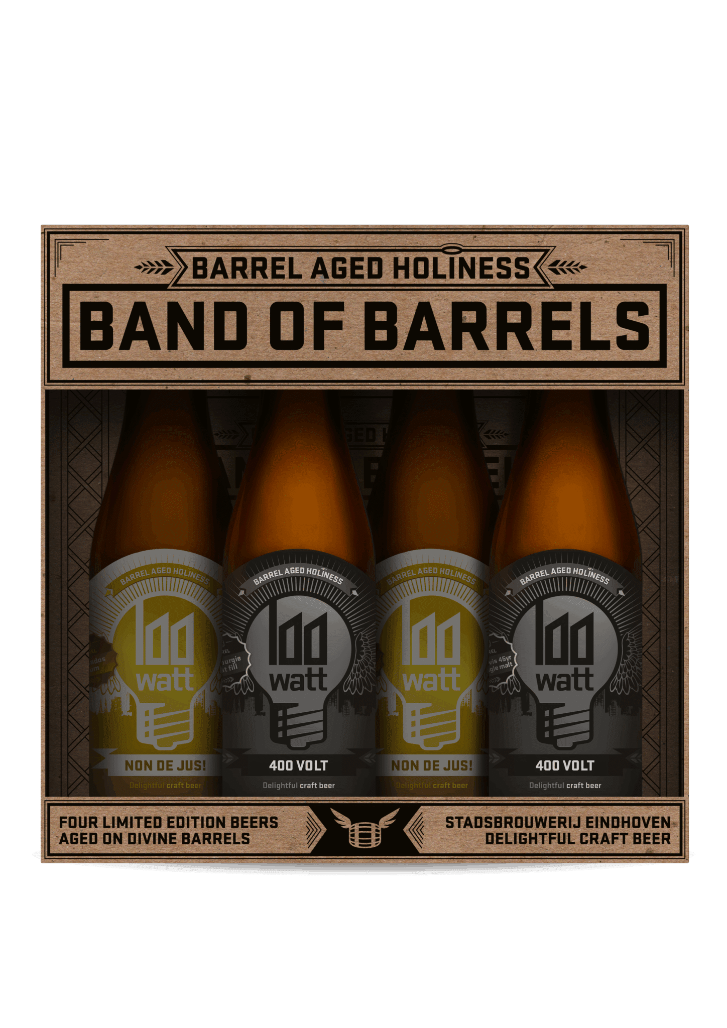 Een mooie selectie van vier barrel aged bieren 100 Watt. Allemaal verpakt in een mooie geschenkverpakking. Het perfecte cadeau voor een bierliefhebber uit Eindhoven.